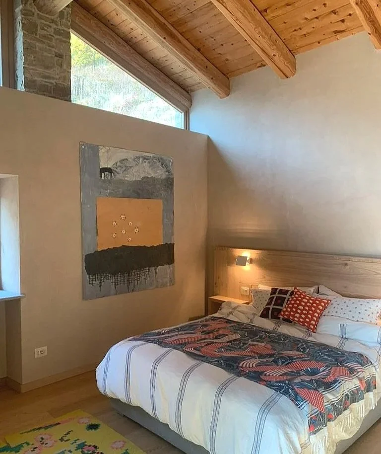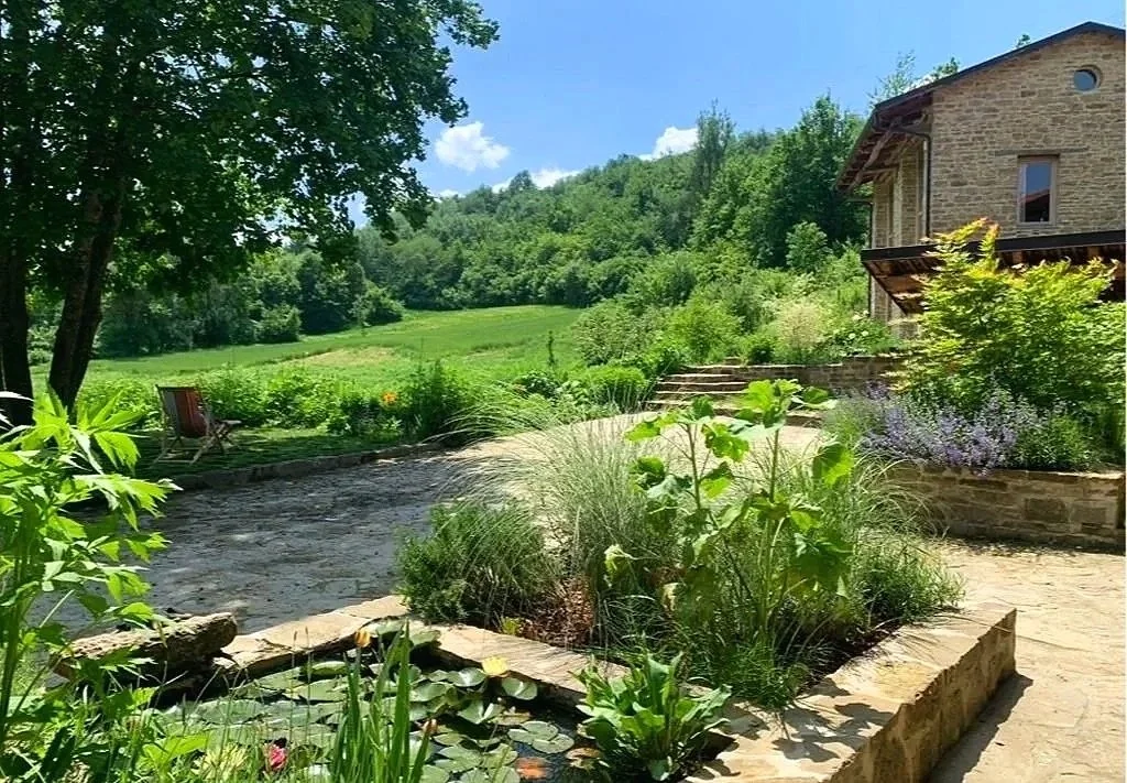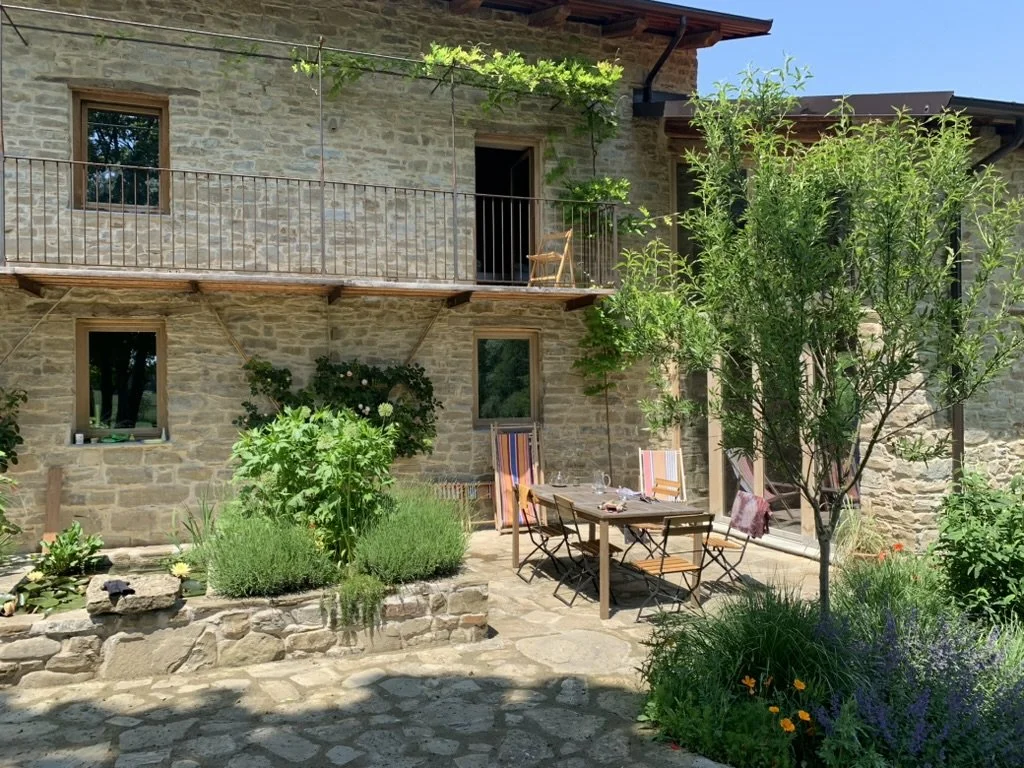 Set in the suspended “hanging valley” of the upper Belbo River basin in Piedmont, Italy, this farmhouse and adjoining hay-barn, are perfect examples of the historic Alta Langa rural farm architecture. Completely restored combining traditional building traditions with contemporary systems, this farmstead has become a holistic family home and vacation spot for those who seek some time in unspoiled nature. Sustainability strategies mirror (once upon a time) passive building traditions while allowing for new natural insulation systems bringing these structures to minimal fuel consumption and healthy indoor air quality. Ongoing extensive “natural” landscaping, fruit & vegetable gardens and rewilding parts of the intensive farming fields brings this property into the future while linking it to history.